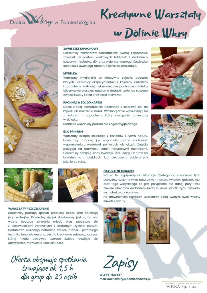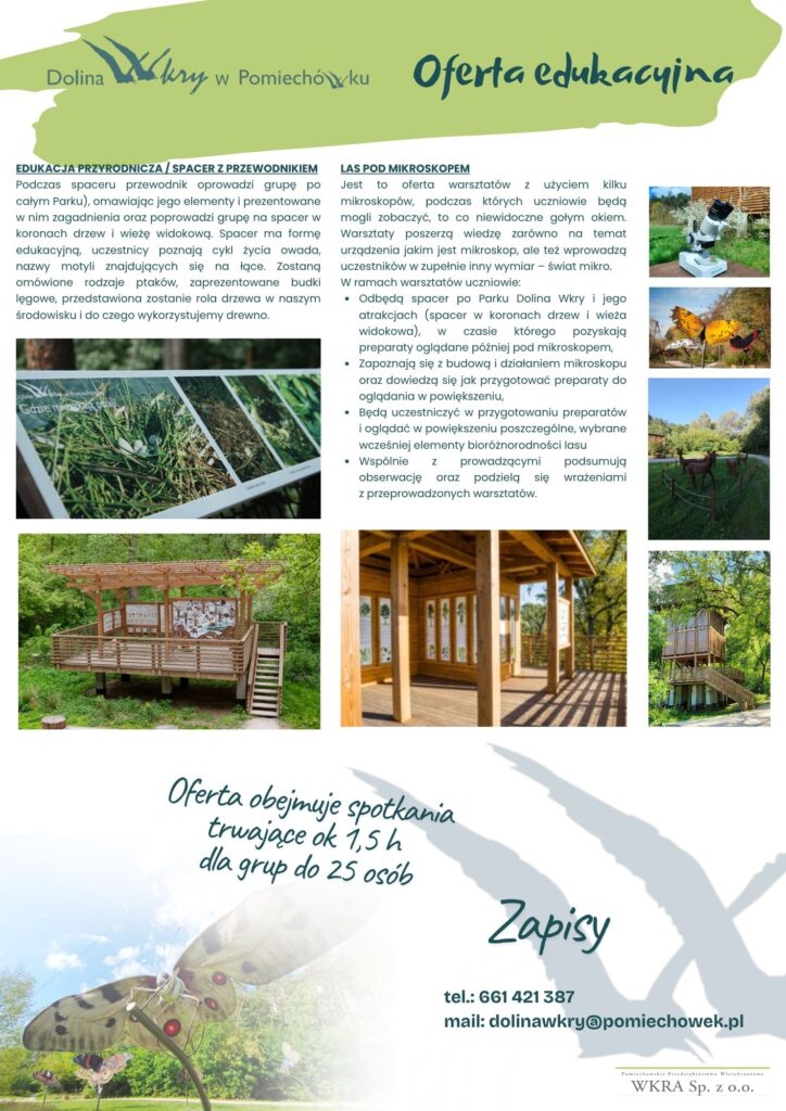 Grupy zorganizowane serdecznie zapraszamy do korzystania z oferty przygotowanej dla wszystkich grup wiekowych. Park Dolina Wkry to miejsce, które daje wiele możliwości atrakcyjnego spędzania czasu zarówno przedszkolakom, uczniom, jak też osobom dorosłym, w tym seniorom. Na 10 hektarach leśnego terenu, w naturalnym krajobrazie, powstała infrastruktura umożliwiająca naukę, zabawę i relaks. Grupy odwiedzające Park Dolina Wkry zachęcamy do skorzystania z bogatej oferty warsztatów edukacyjnych, warsztatów rękodzieła, zwiedzania Parku z przewodnikiem oraz dodatkowych atrakcji. Wszystkie wymienione propozycje zostały szczegółowo opisane w folderze zamieszczonym poniżej. Na życzenie przesyłamy folder mailem. Szczególnie polecamy nową propozycję warsztatów edukacyjnych LAS POD MIKROSKOPEM. Aktualny cennik warsztatów i atrakcji można znaleźć tutaj.